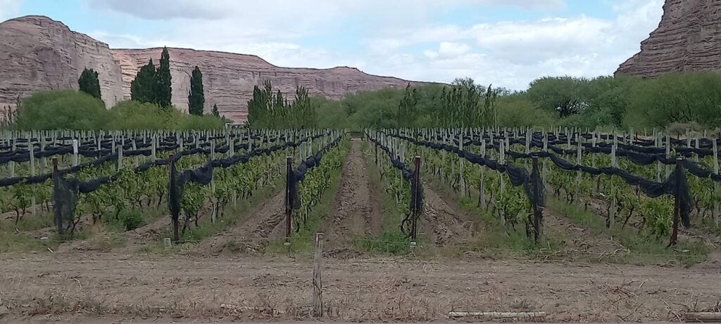 Viñedos de 2 hectáreas con Malbec, cabernet feanc, torrontes y chardonnay. Sistema de riego por surcos.