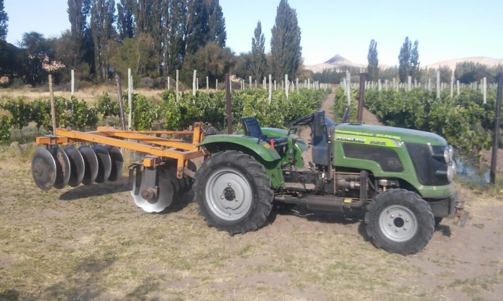 Máquinas y herramientas necesarias para el trabajo en los viñedos y tractor.